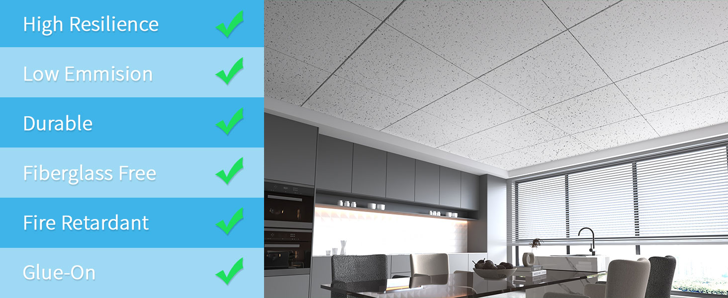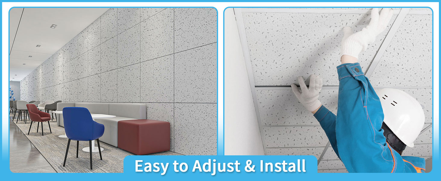 Advanced Acoustic Material: Crafted from high-density polyester, these ceiling tiles deliver outstanding sound absorption, low-emission, and moisture resistance, while remaining lightweight, flexible, and resistant to sag, rust, and breakage