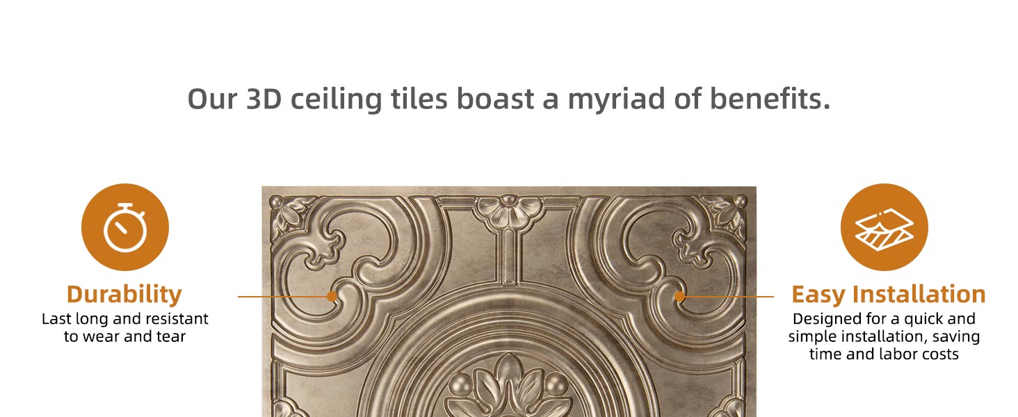 Versatile Design Applications: Perfect for a multitude of applications. Whether you’re aiming to enhance the look of your ceilings or walls, these tiles provide a sophisticated touch to any space, suitable for both new constructions and upgrades.