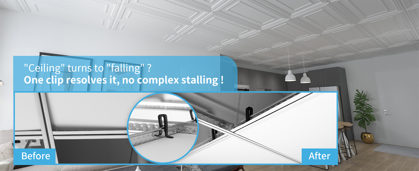 Art3d Hold-Down Clips + Art3d Ceiling Tiles = Flawless Finish !