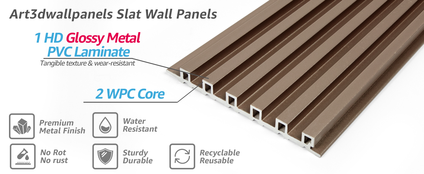 Pack: 8 Pack 104'' x 6.7'' Slat Wall Panel + 48 screws + 48 Clips + 2 Glues