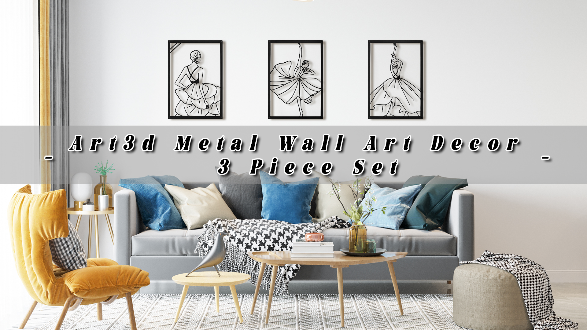 A22006BK03-Art3d Set of 3 Black Metal Wall art, Wall Decor for Living room,Dining Room,Hallway, Dance Room, Line Art Wall Décor,Dancer theme Wall Art Style
