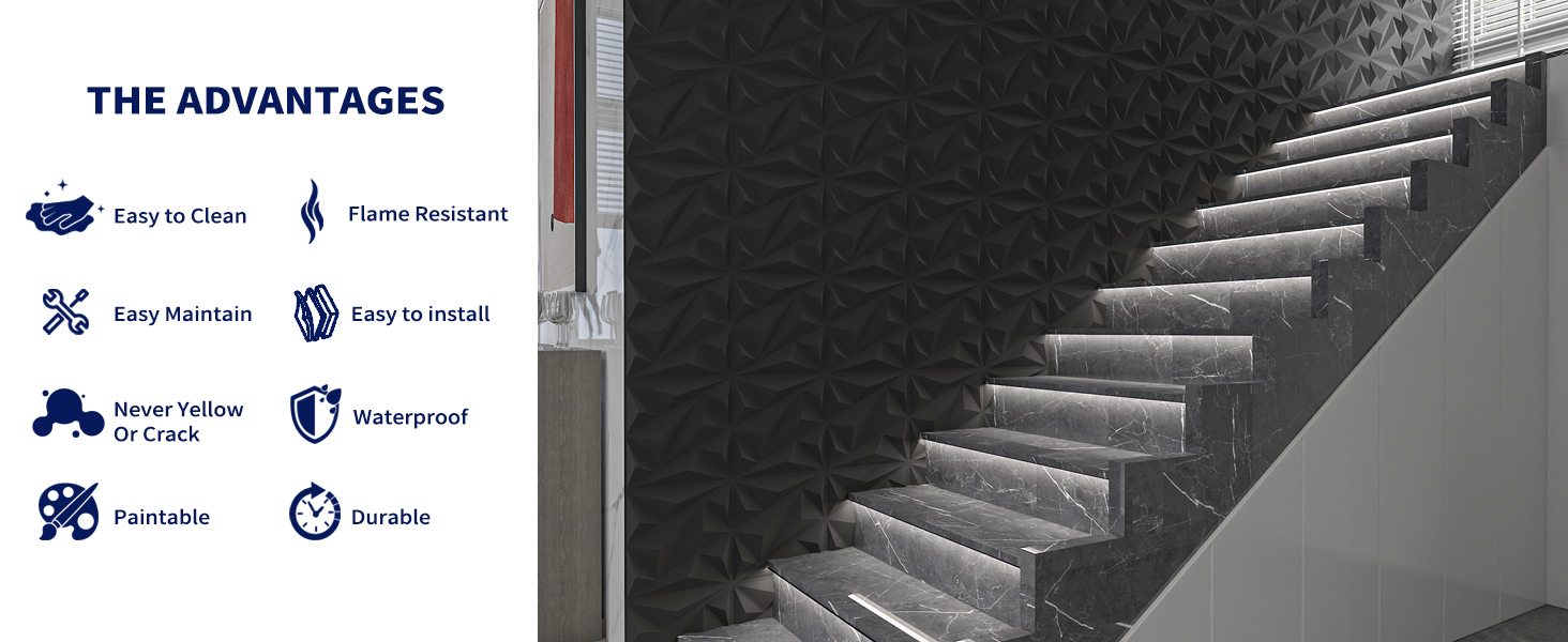 3D wall panels have a stylish color. Use your imagination to plan the placement of the panels in conjunction with ambient lighting and home style!